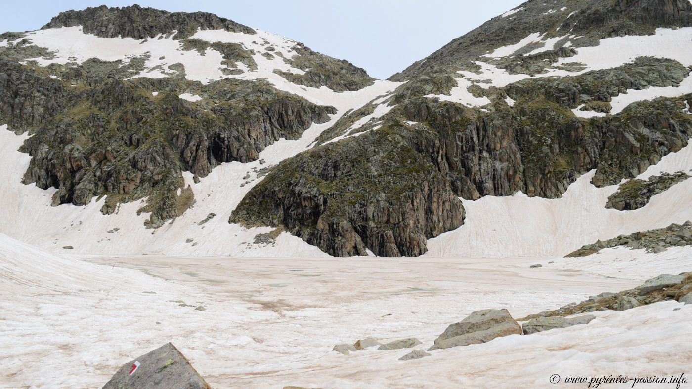 Accès au départ : Après le tunnel de Vielha, en direction de Pont de Suert, prendre la direction du village d’Aneto. Suivre la route du barrage de Llauset qui se transforme en piste. Après un tunnel, laisser la voiture au-dessus du barrage (2240 mètres).