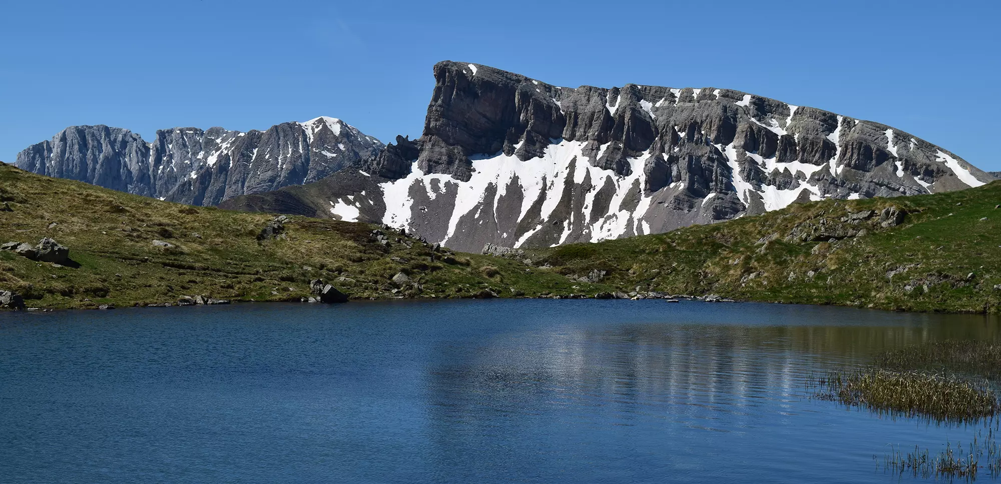 Le lac, aux eaux profondes et d’un bleu intense, est entouré de pelouses alpines et de falaises calcaires, créant un paysage de contraste saisissant. Peu fréquenté en dehors de l’été, il reste un site apprécié des randonneurs et des amoureux de solitude.
