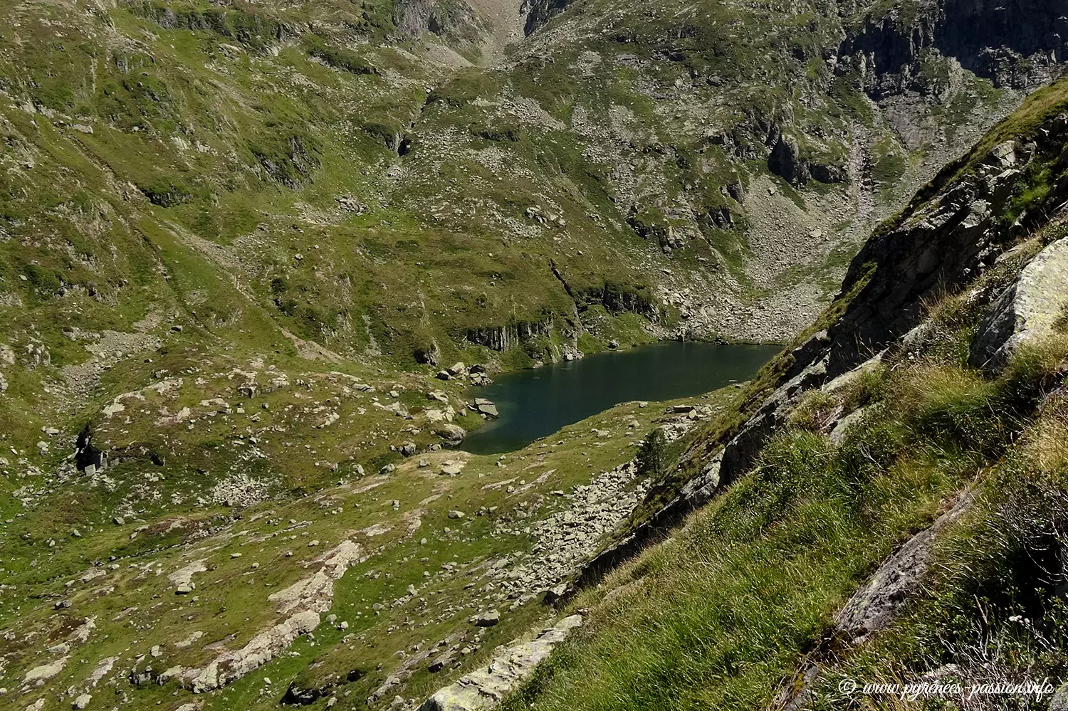 Ses eaux claires reposent dans une cuvette granitique, où la végétation se raréfie progressivement. Les reliefs environnants, plus abrupts, renforcent l’impression de haute montagne et annoncent la proximité des crêtes frontalières.