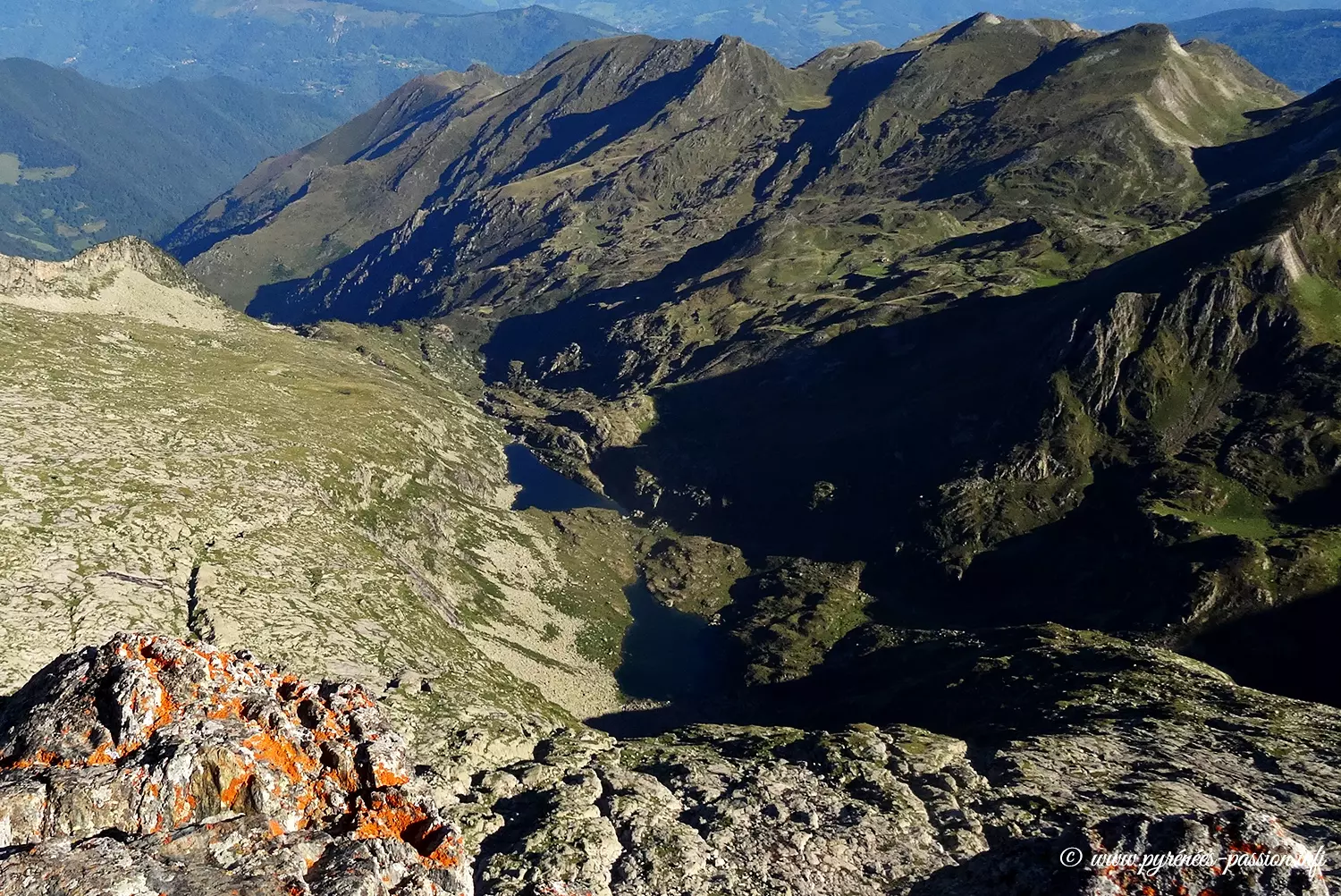 L'Étang de Milouga et l'Étang d'Arauech vus depuis le sommet du Mont-Valier