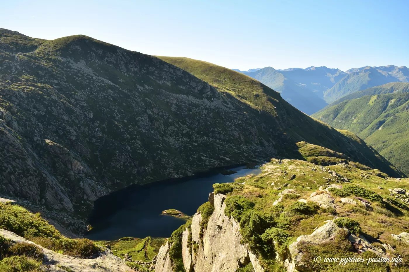 Ce lac sauvage est dominé par le majestueux Pic des Trois Seigneurs (2 199 m). Depuis ce sommet emblématique, le panorama s’étend sur les vallées du Vicdessos et du Couserans, offrant une vue grandiose sur une grande partie de l’Ariège.