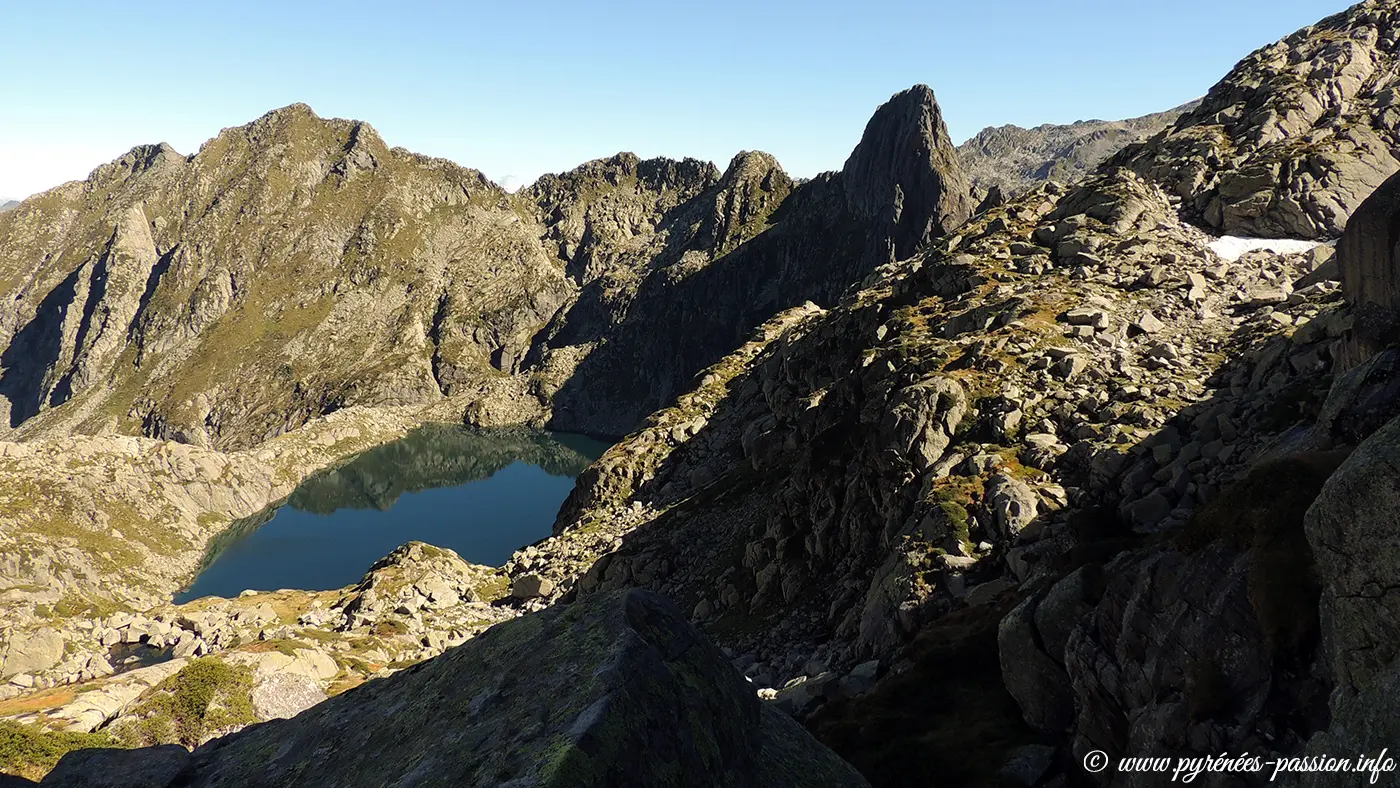 Le cadre, minéral et silencieux, offre une atmosphère de haute montagne accessible aux bons marcheurs. L’étang constitue une halte idéale avant de poursuivre vers le pic de Séron (2 489 m). De là-haut, un vaste panorama s’ouvre sur quelques grands noms de l’Ariège pyrénéenne : le pic de Certascan, le Montabone, et l’imposant Mont-Valier, seigneur des lieux.