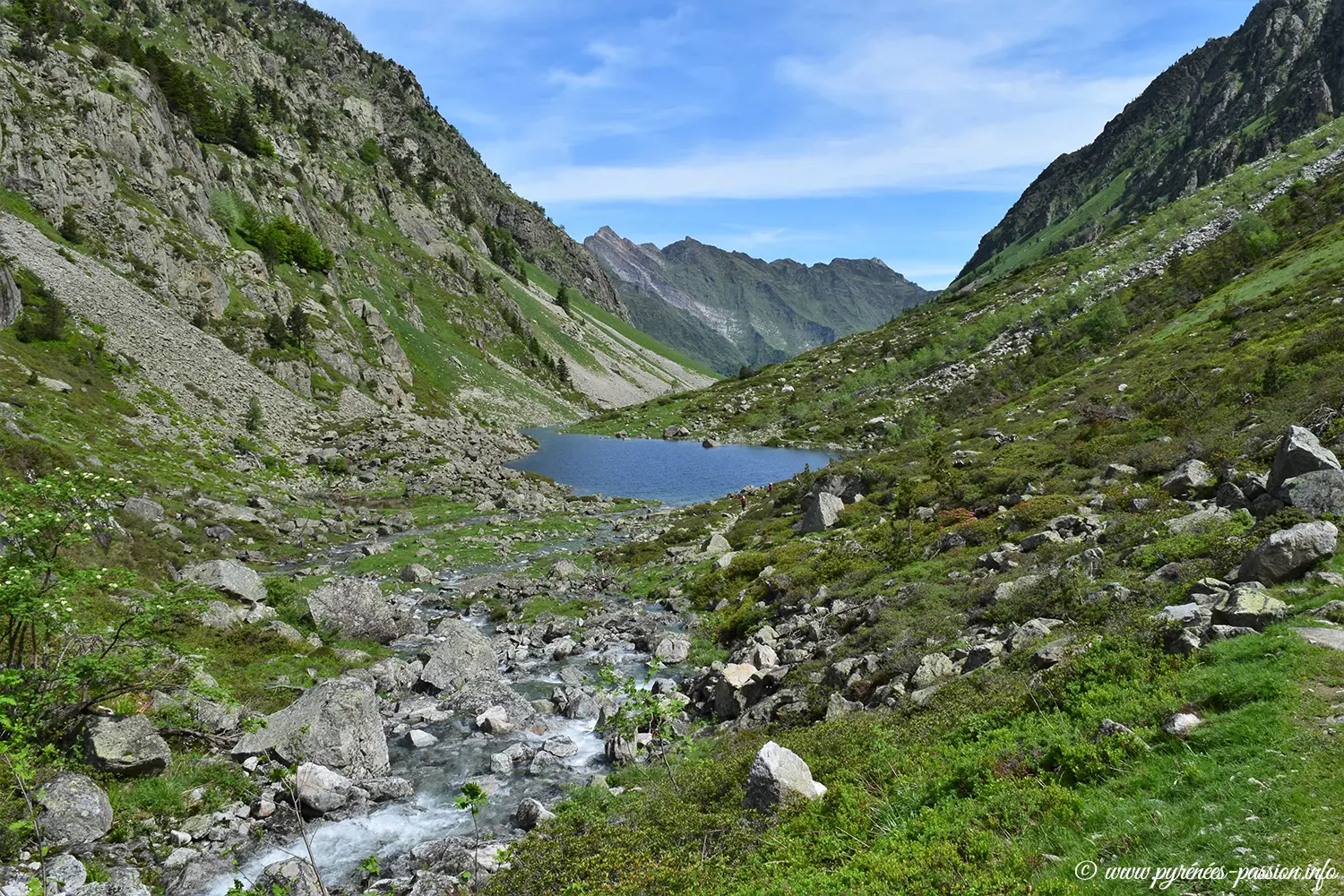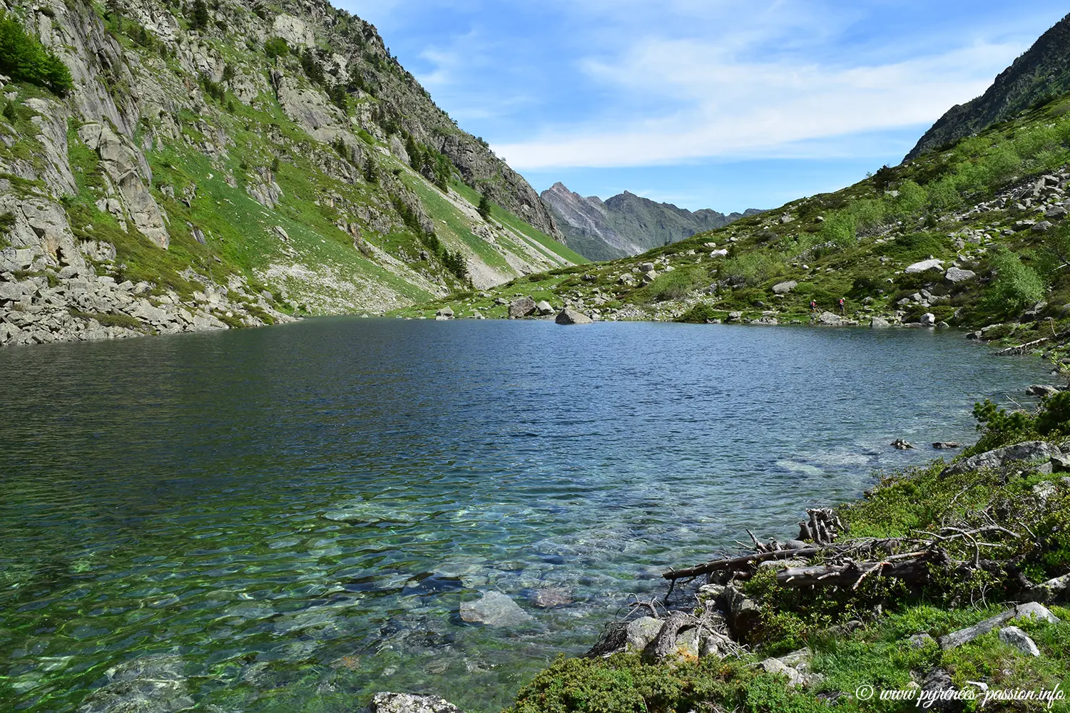 Le sentier serpente d’abord à travers la hêtraie puis s’ouvre sur la vaste vallée glaciaire d’Estaing, où s’écoulent les eaux claires du gave de Labat de Bun. En poursuivant la montée, on parvient au lac de Langle, blotti dans une cuvette granitique.