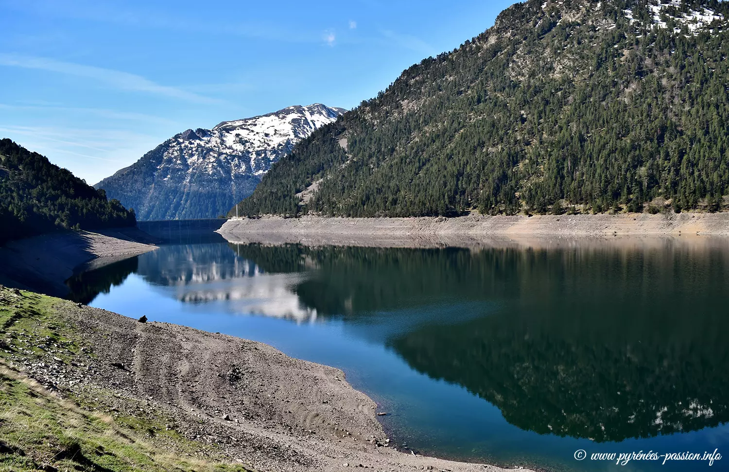 Dans les années 1950, une surélévation en béton de 20 mètres permit de porter la capacité utile du réservoir à 16,1 millions de m³, renforçant son rôle au sein du dispositif hydroélectrique du Néouvielle. En 1983, la S.H.E.M. compléta l’aménagement par l’installation, au pied du barrage, d’un groupe électrogène équipé d’une turbine Francis de 2 MW.