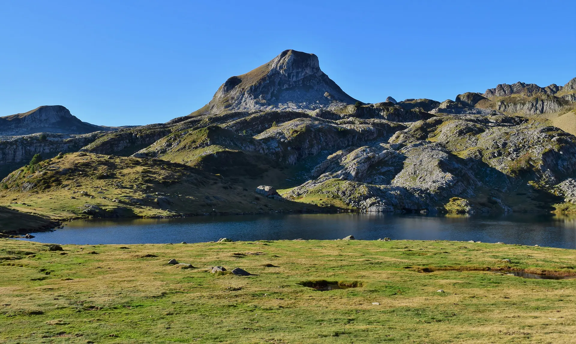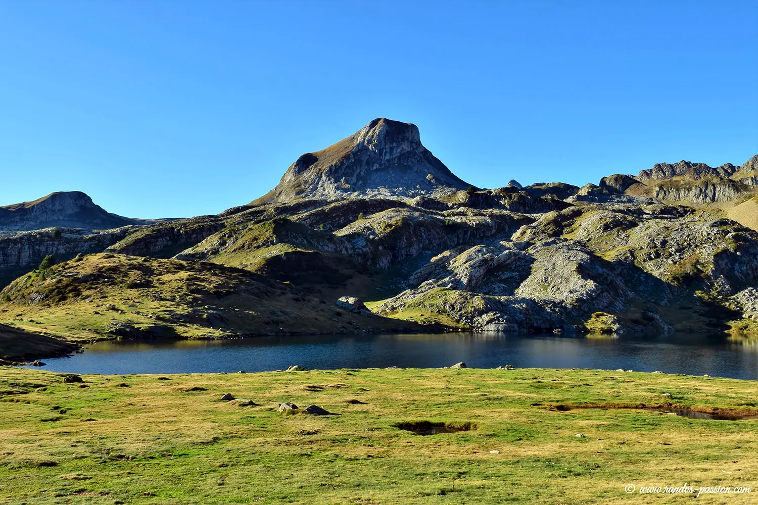 Le lac Roumassot fait partie de l’ensemble des lacs d’Ayous, aux côtés du lac Gentau et du lac du Miey. Niché au cœur d’un écrin verdoyant, il est dominé par le pic Casterau, dont la silhouette se dresse fièrement au-dessus de ses eaux calmes. Mais c’est surtout le majestueux pic du Midi d’Ossau qui capte irrésistiblement le regard.