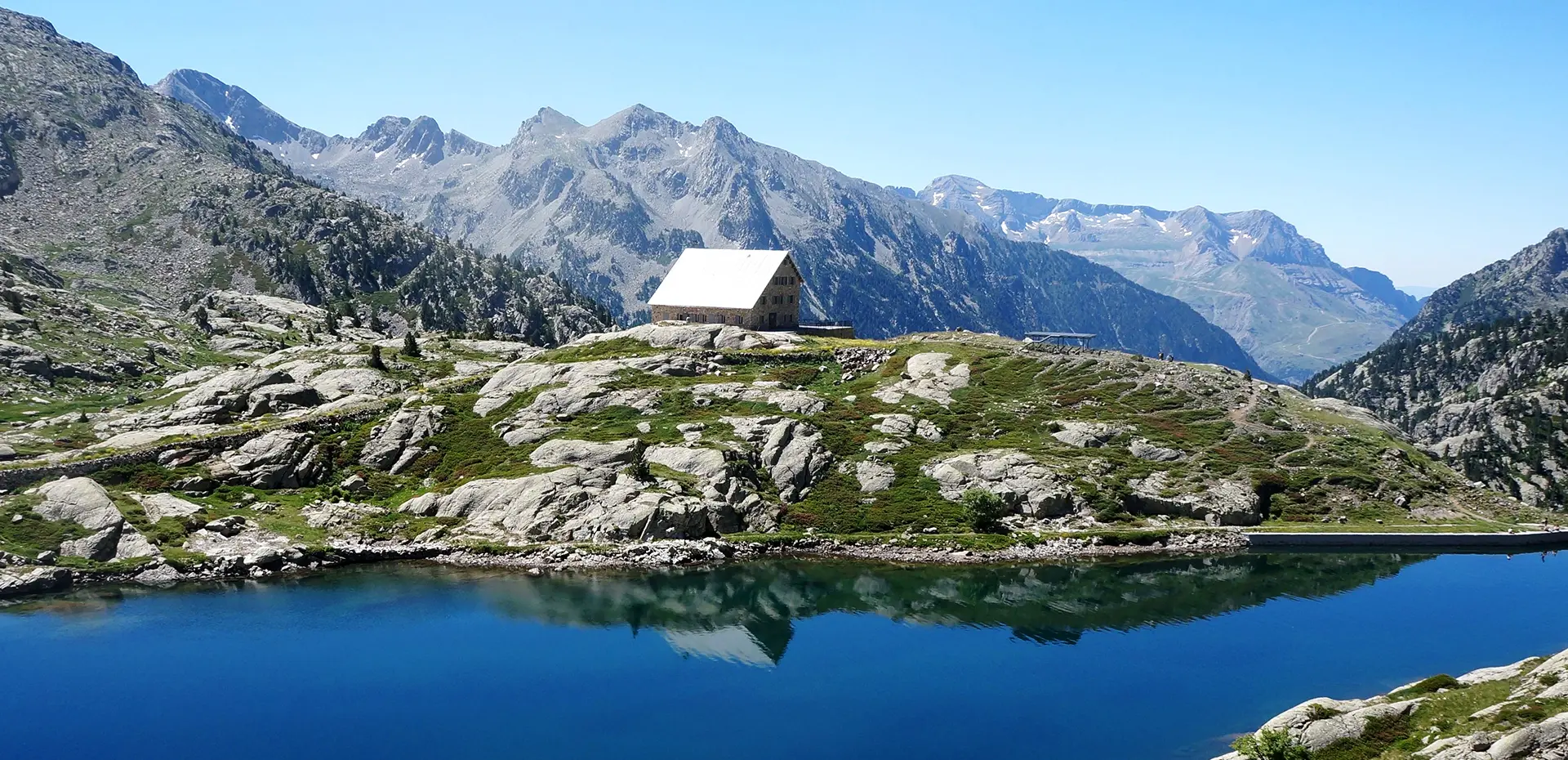 Accès : Du refuge Casa de Piedra, suivre le GR 11 qui remonte la rive droite de la rivière Caldarés. Traverser le petit barrage de l’ibón inférieur de Bachimaña pour arriver au refuge.