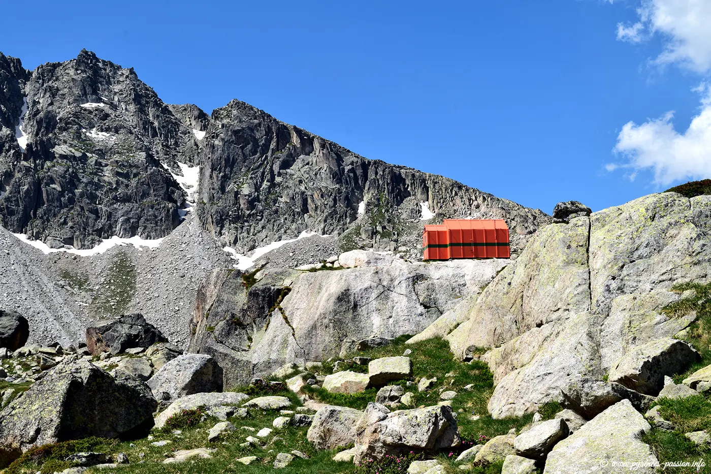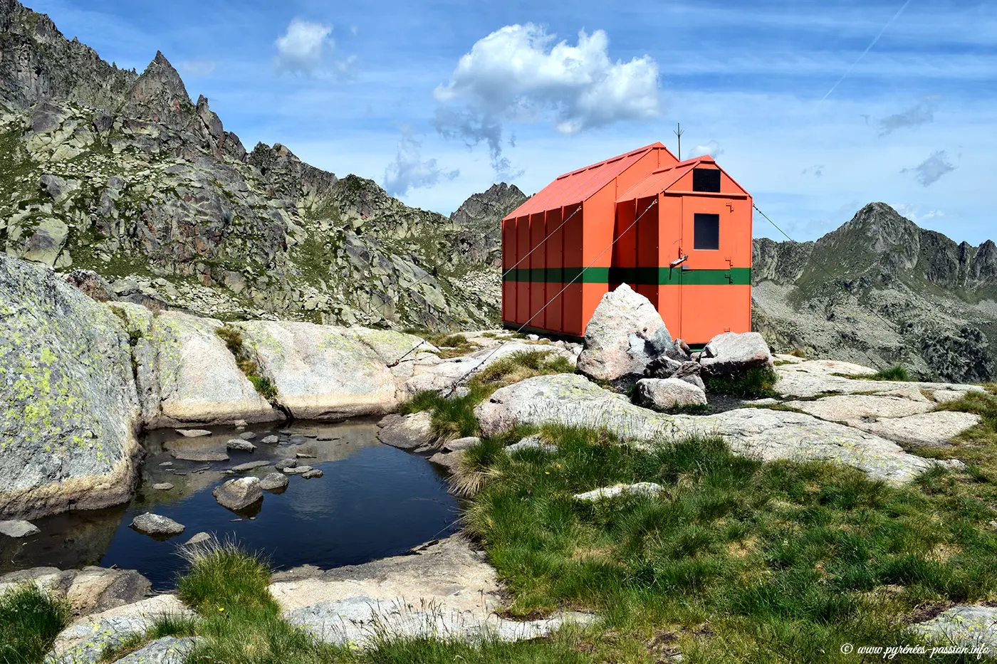 Ce petit refuge métallique, au design épuré, possède un intérieur chaleureux en bois, pouvant accueillir 9 personnes sur des bat-flancs. Bien entretenu, il offre un abri précieux dans un cadre de haute montagne sauvage.