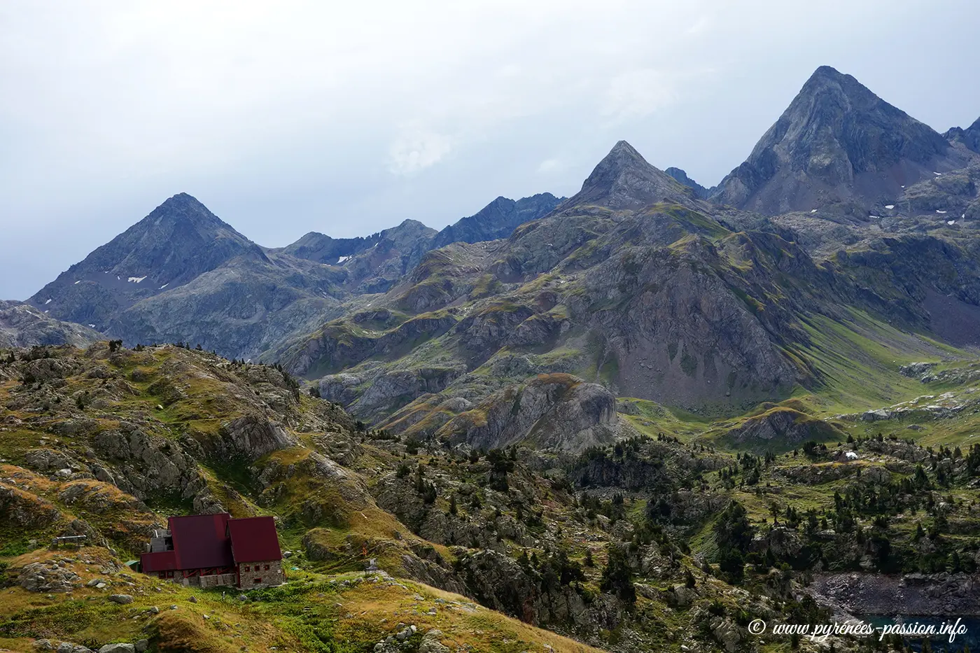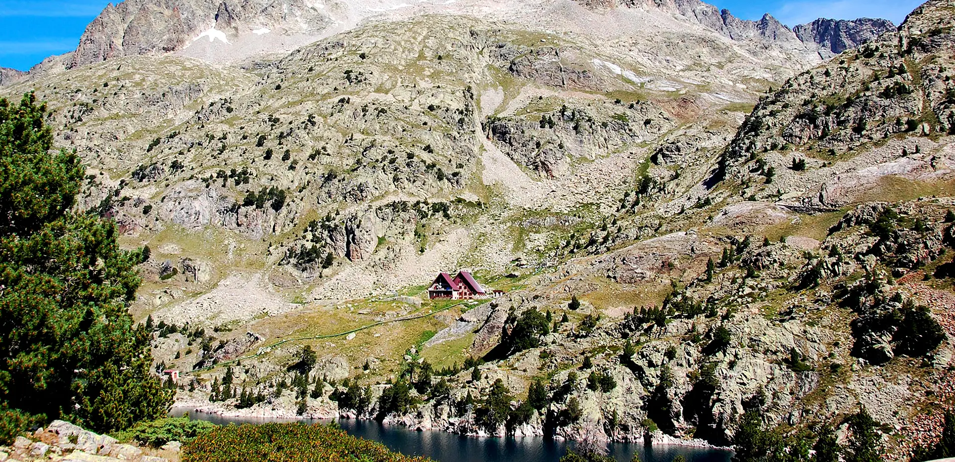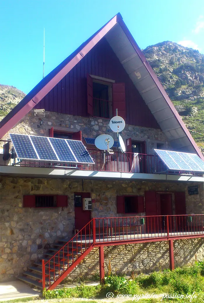 Construit en 1993, ce refuge moderne et accueillant est une base idéale pour explorer les sommets granitiques imposants qui dominent le secteur : les Frondellas, la Punta Zarre, la Grande Fache, et surtout le Balaïtous (3 144 m), le 3 000 le plus occidental des Pyrénées, dont la silhouette massive veille sur le lac.