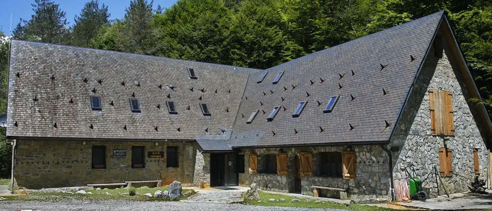 Situé à 1 240 mètres d’altitude, au fond de l’imposante vallée de Pineta, le refuge de Pineta offre un cadre grandiose, entre forêts profondes, parois verticales et cascades rugissantes. C’est l’un des accès les plus spectaculaires du Parc national d’Ordesa et du Mont-Perdu, classé au patrimoine mondial de l’UNESCO.