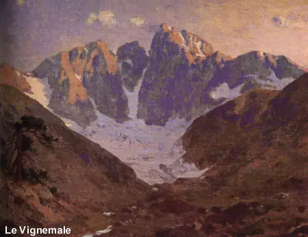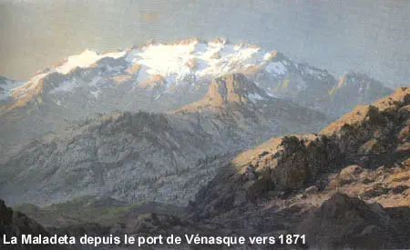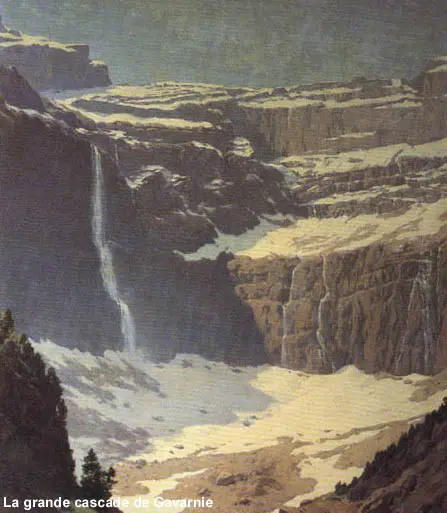 Les Pyrénées constituent son réservoir de motifs préférés (panoramas du Piméné, du Mont-Perdu, du Cotatuero, etc) mais il peint aussi les Alpes. Pensons à son Panorama du Mont-Blanc pour le pavillon du CAF à l’Exposition universelle de 1900.