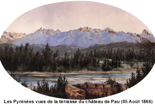 Il existe une aquarelle qui immortalise ce moment : « Les Pyrénées vues de la terrasse du château de Pau (05 août 1866) ».