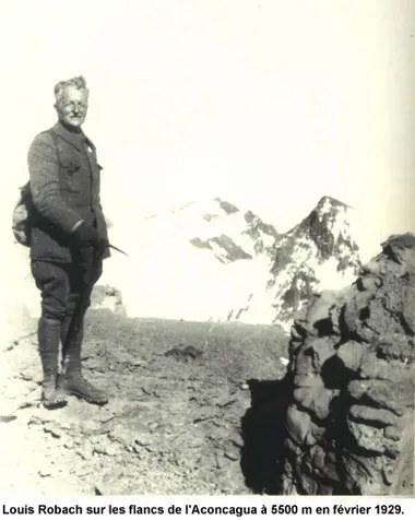 Nous avons laissé Le Bondidier, Seigneur du Château-Fort de Lourdes, ouvrir le ban en l’honneur de Robach, un soir d’été 1933, après avoir annoncé que cet homme modeste était plein d’ambitions et qu’il voulait notamment monter à 6.000 mètres et faire le tour du monde. Il restait à Robach 26 ans pour exécuter ce programme. Il avait alors 62 ans ; à cet âge, la plupart des hommes réduisent considérablement leurs activités et, les pieds dans les pantoufles, le derrière sur un coussin, souvent le petit verre à la main, ne goûtent plus guère que les plaisirs de la table ou, pour les meilleurs, ceux de l’esprit. Robach, lui, ne changea rien à ses habitudes. Mieux : il élargit son champ d’action.