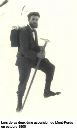 Le 24 août 1900, il fait son premier Mont-Perdu : « Je comprends l’extase de Ramond en face d’un tel tableau ; sous le soleil du matin, les glaciers sont éblouissants et les sommets détachent leurs silhouettes blanches ou noires sur le ciel azuré. Je n’ai encore rien vu d’aussi beau ! » Il montera 43 fois au sommet ! La dernière à 77 ans le 01 sept 1948.