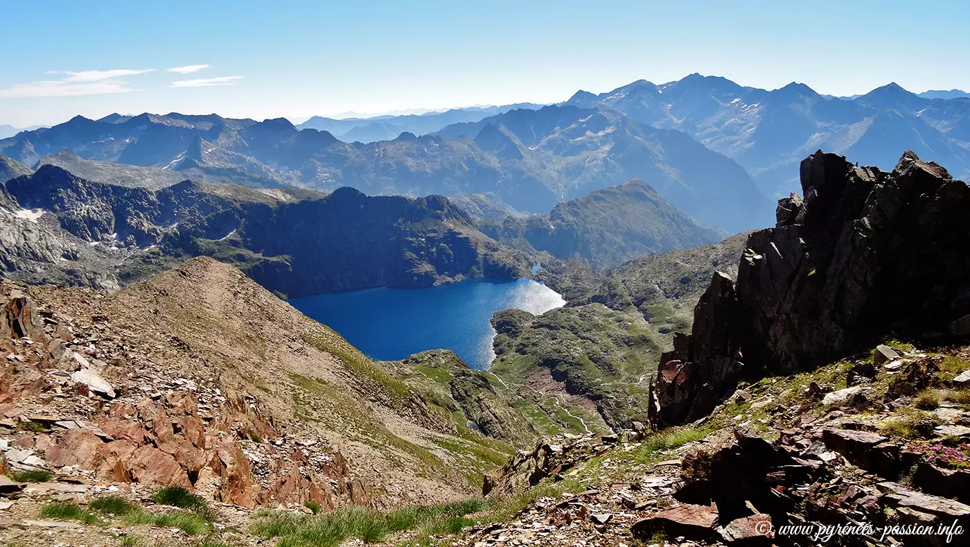 Au col de Certascan (2 587 m), une variante permet de gravir le pic de Certascan (2 853 m) en aller-retour, offrant un vaste panorama sur les hautes montagnes environnantes. La descente conduit ensuite au refuge de Certascan, situé au bord de l’un des plus grands lacs naturels des Pyrénées. Entouré de sommets austères, le site constitue une halte emblématique, où l’atmosphère puissante invite naturellement à la contemplation.