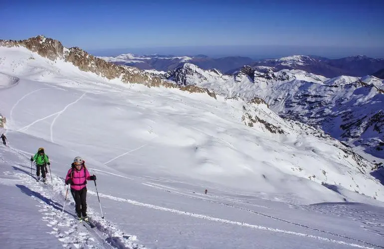 Le Ski de randonnée vous permettra de découvrir la haute montagne Pyrénéenne sous un autre jour. À l’aide de skis équipés d’une fixation mobile fournis par Pyrénées Trekking, permettant de monter la piste à contre-sens, vous atteindrez des sommets ! Cette excursion vous permettra d’atteindre des points de vue incroyables. La descente s’effectue normalement comme lors de la pratique du ski hors pistes. Le terrain de jeu est immense. Il commence à proximité des stations et s’étend à l’infini vous permettant d’admirer des coins de nature d’habitude inaccessibles et intactes.