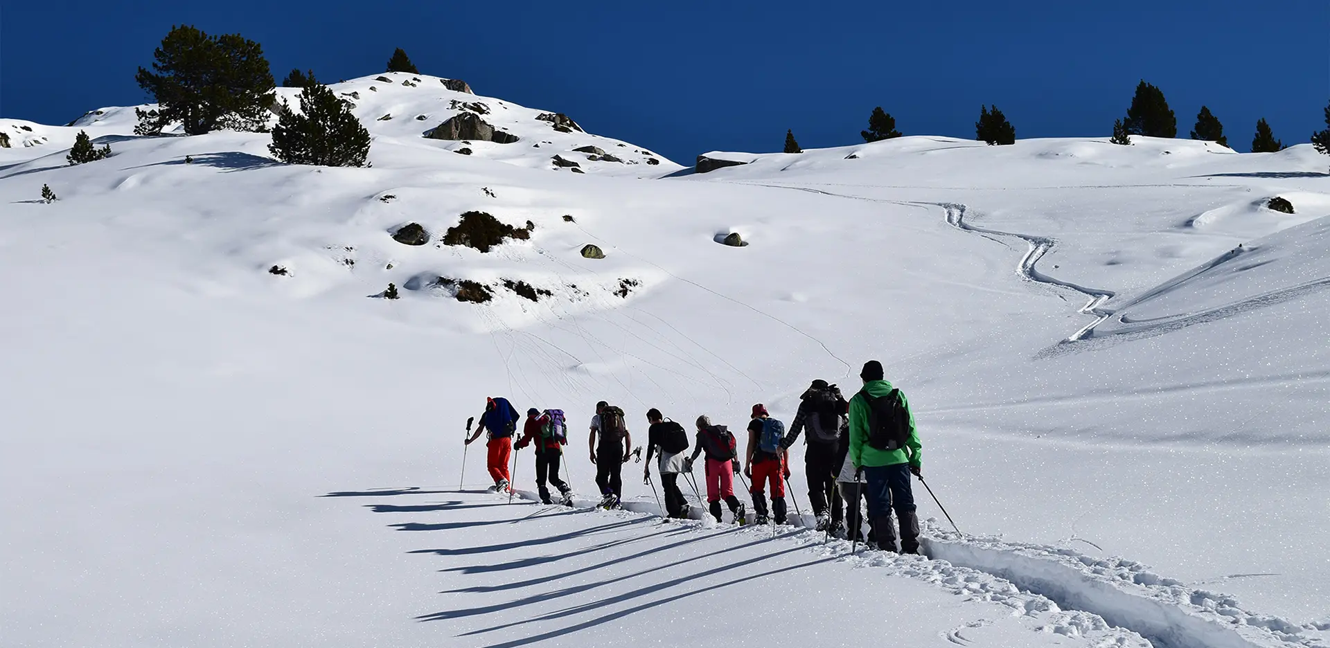 - Équipez-vous correctement : raquettes, bâtons, chaussures montantes, guêtres, vêtements chauds et respirants, gants étanches, lunettes de soleil et crème solaire.